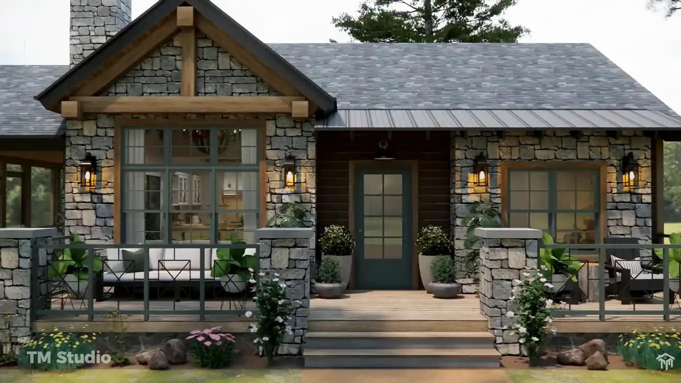 8. Rustic Cottage Exterior with Stone & Wood Appeal
