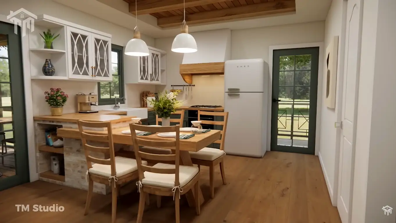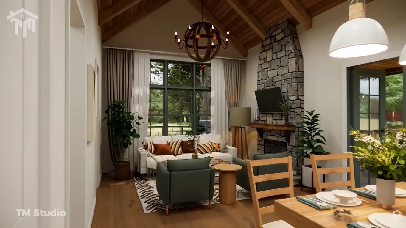 This charming 2-bedroom cottage house plan offers a perfect balance of cozy living, modern comfort, and timeless rustic style. With a total conditioned area of 940 sq ft, this home is ideal for small families, couples, retirees, or as a peaceful vacation getaway.