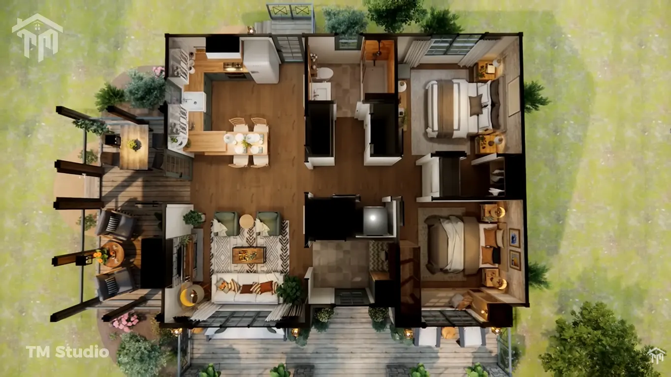 Great small home plan with a smart and practical layout. The open kitchen, dining, and living area feel comfortable, and the bedrooms are well positioned for pr...