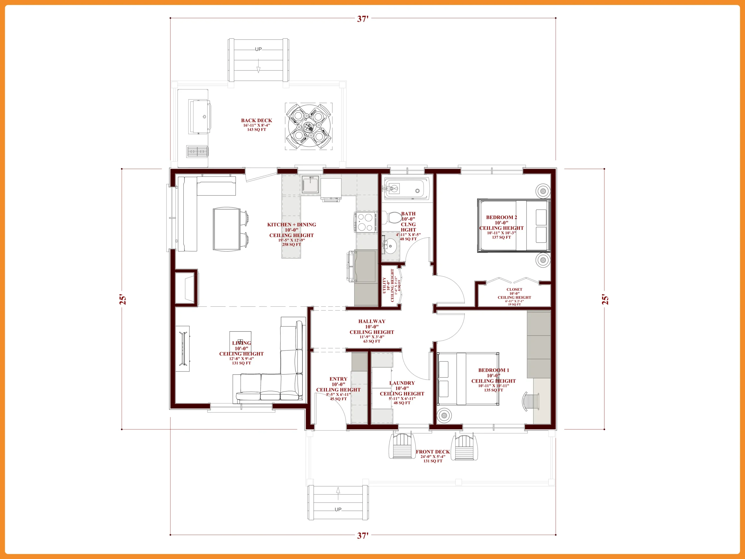 With 10-foot ceilings on the main floor, the interior feels open and airy, enhancing comfort without increasing construction costs. The plan also includes a dedicated laundry room, smart hallway circulation, and efficient plumbing alignment to reduce build complexity.