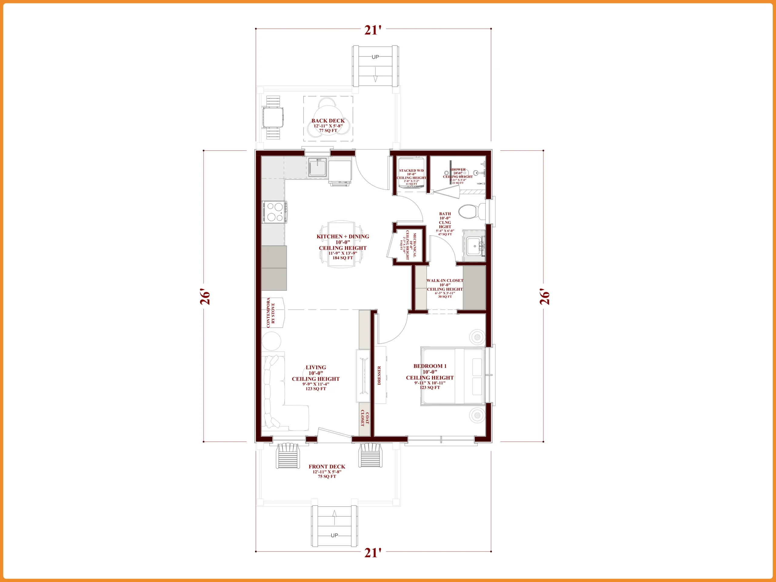 Overall Dimensions: 21’ Width x 26’ Depth