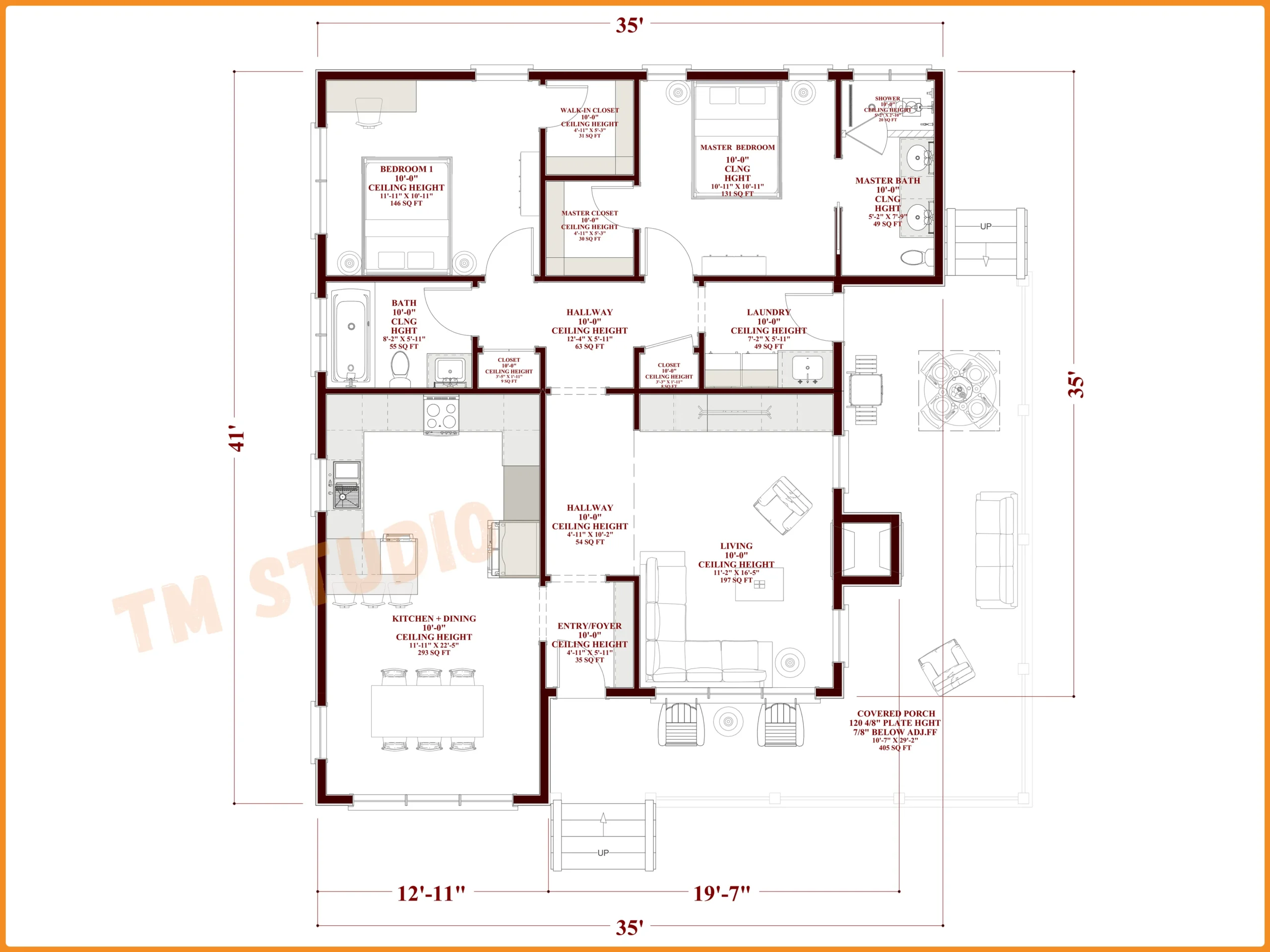 TMS-074-CF1 – 35’ x 41’ One-Story 2 Bedroom House Plan