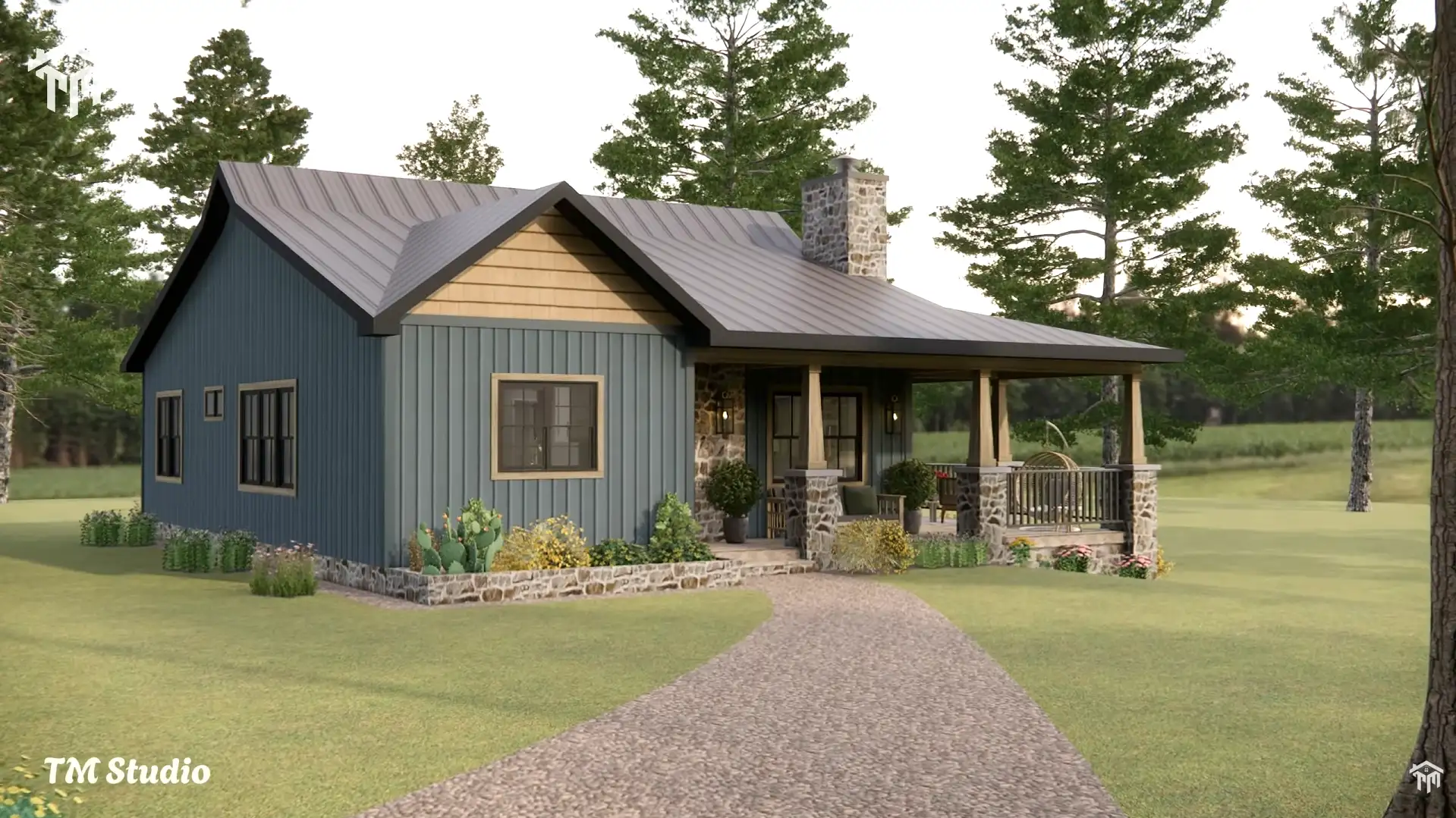 TMS-101-CF1 – Cozy Cabin Style Small House Plan | TM Studio-Small House Design